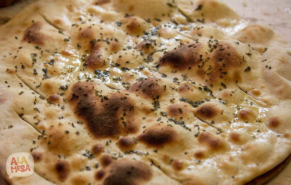 Desfallecida era el término, pero funcionó igual: dieciséis versos después, tenía ante sí, sobre una lata común de puré de tomate —uno de tantos sellos de casa—, una delicia poco común: la masa fina como vehículo de un queso de láctea delicadeza, el tomate en sus dos caras nobilísimas: al natural y en su salsa, la hierbabuena y un chorizo que desde el olor marcaba su auténtico pasaporte de origen.